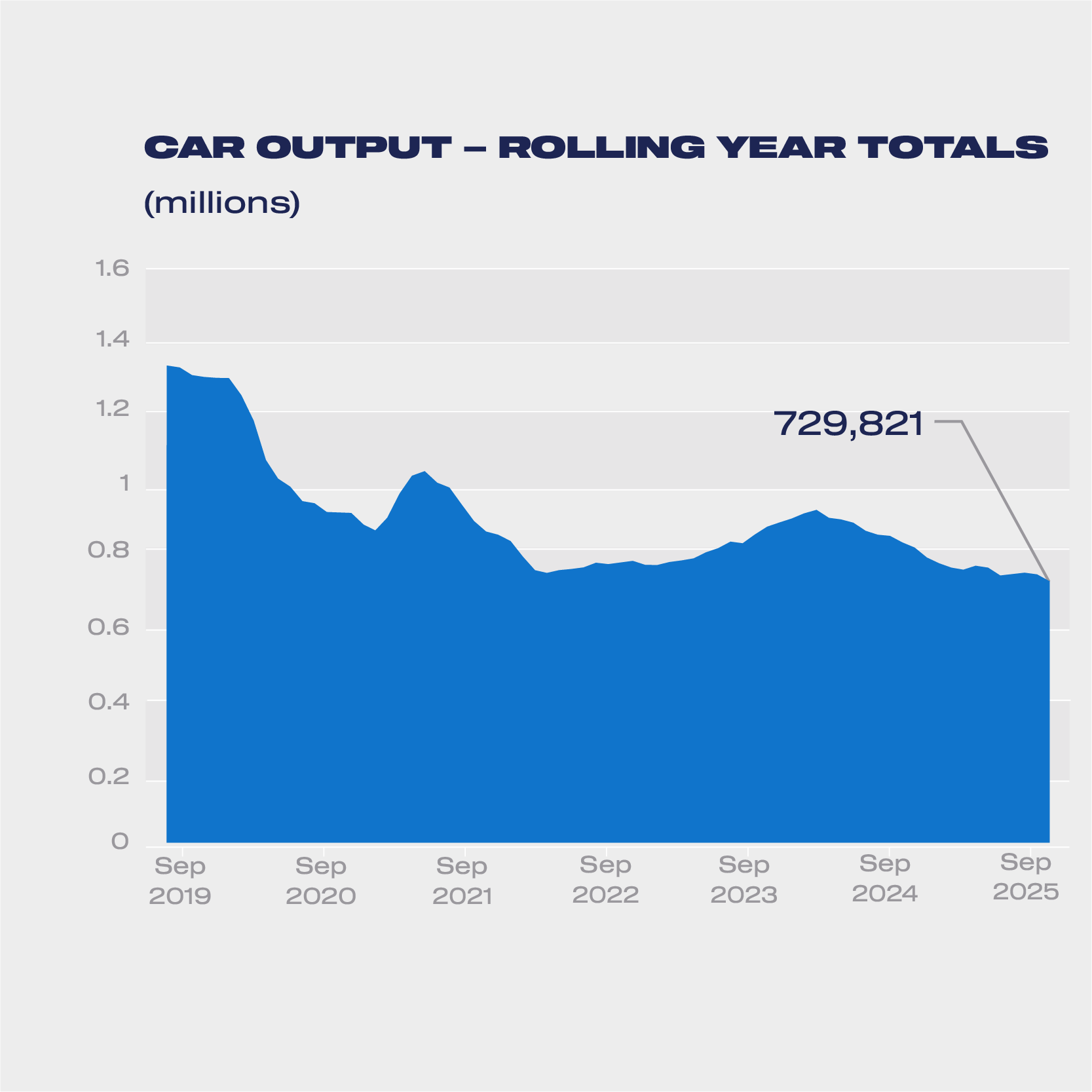 Amid an incredibly challenging global industrial and investment landscape, UK car and van factories turned out a combined 582,250 units this year, representing a -15.2% decline on the equivalent period in 2024. The industry, therefore, is calling for rapid interventions to shore up its competitiveness. Keeping manufacturers’ ECOS schemes would support manufacturing workers and investors and would be an immediate relief, while pulling forward to 2026 critical energy cost interventions – notably the British Industrial Competitiveness Scheme (BICS) – combined with skills funding reforms and programmes to support supply chain resilience would further boost the sector.