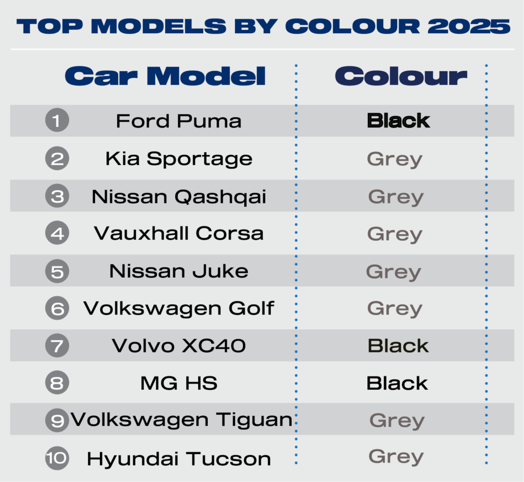 - Grey was also the most popular colour across the majority of powertrains – except for plug-in hybrids (PHEVs), which were most commonly specced in black.