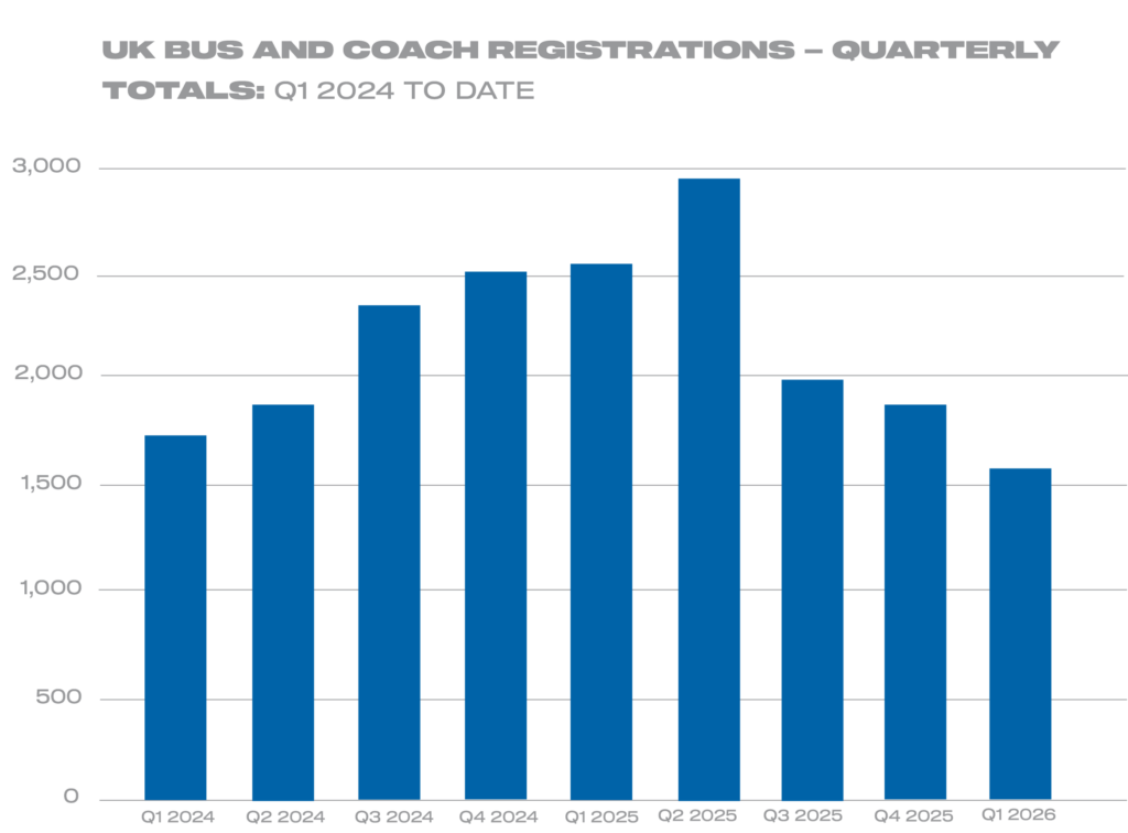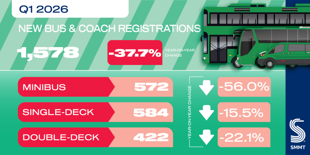 - New bus, coach and minibus market falls -37.7% in Q1 2026 with 1,578 units reaching the road.