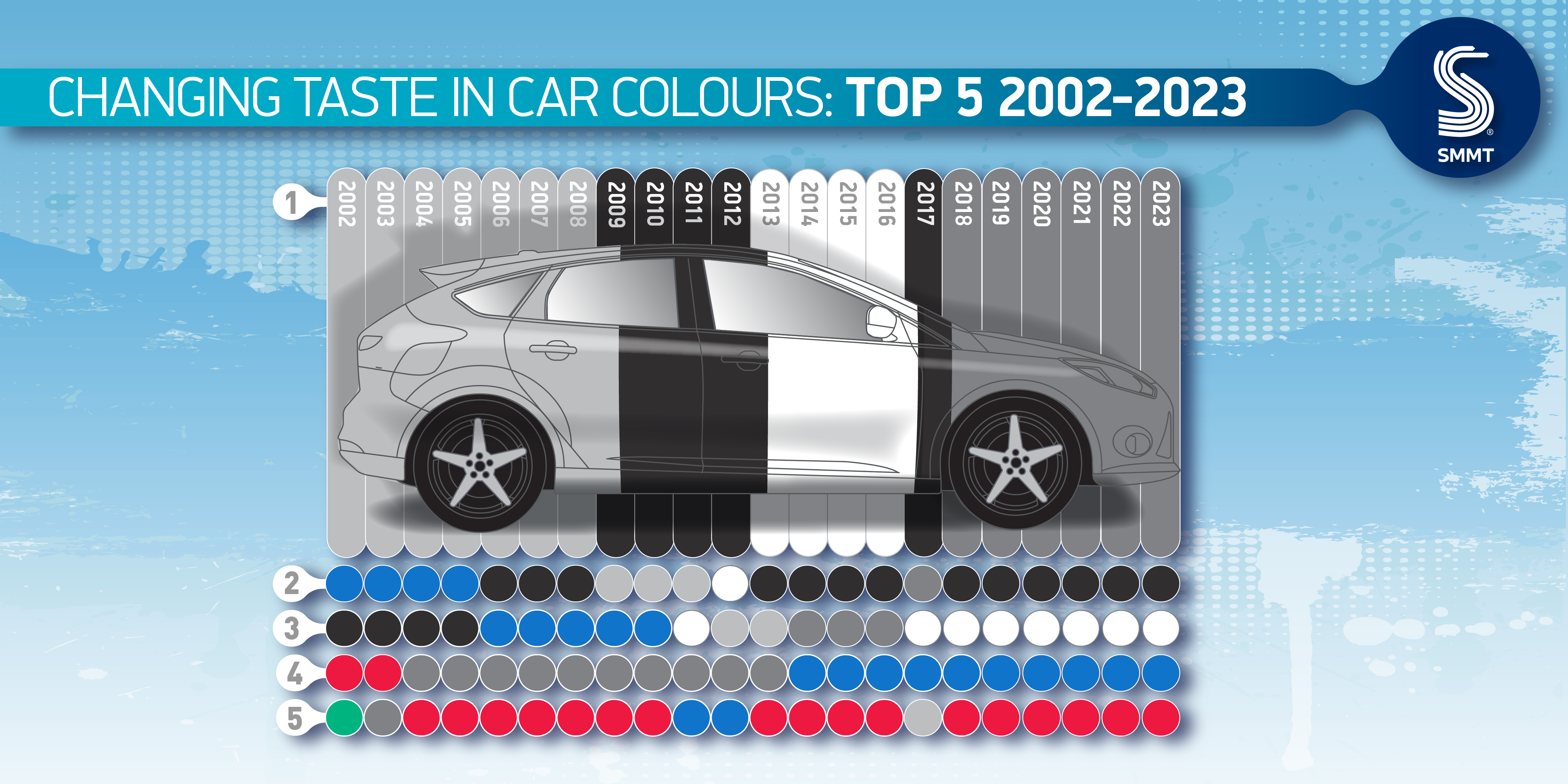 - Black and white complete trio of best-selling colours, marking sixth year of an identical monochrome podium.