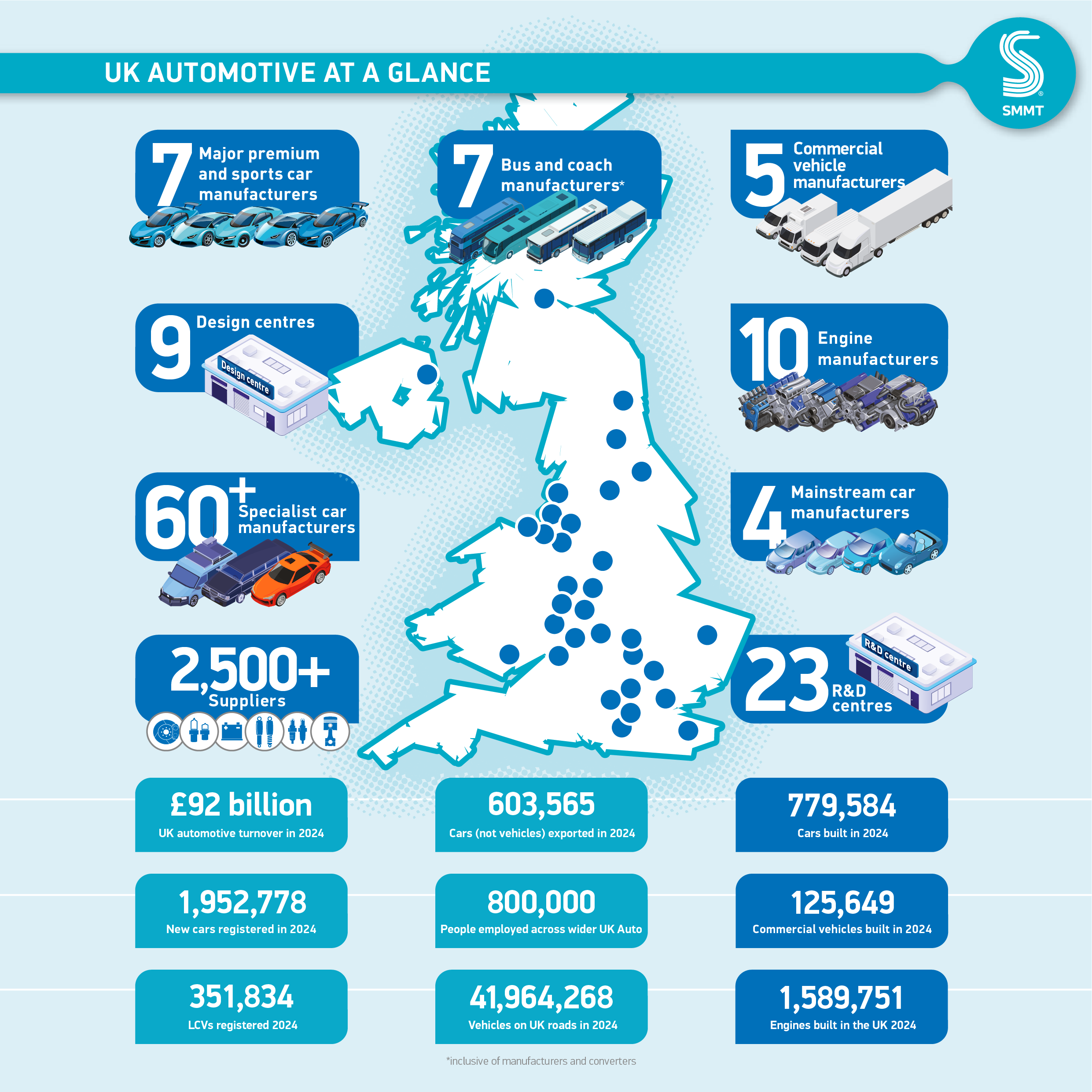Over 779,584 cars, 125,649 commercial vehicles and 1.58 million engines were built in the UK in 2024.