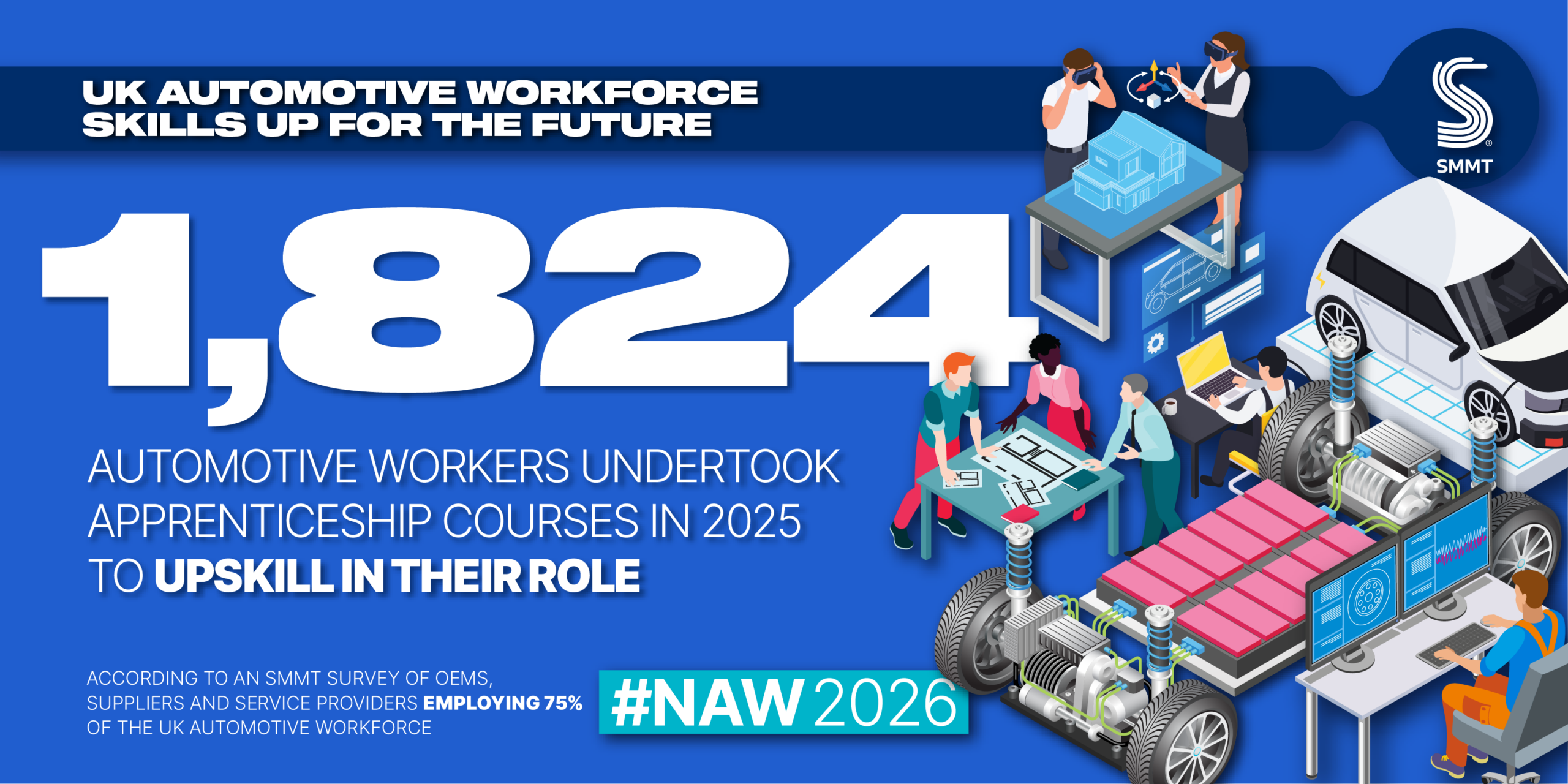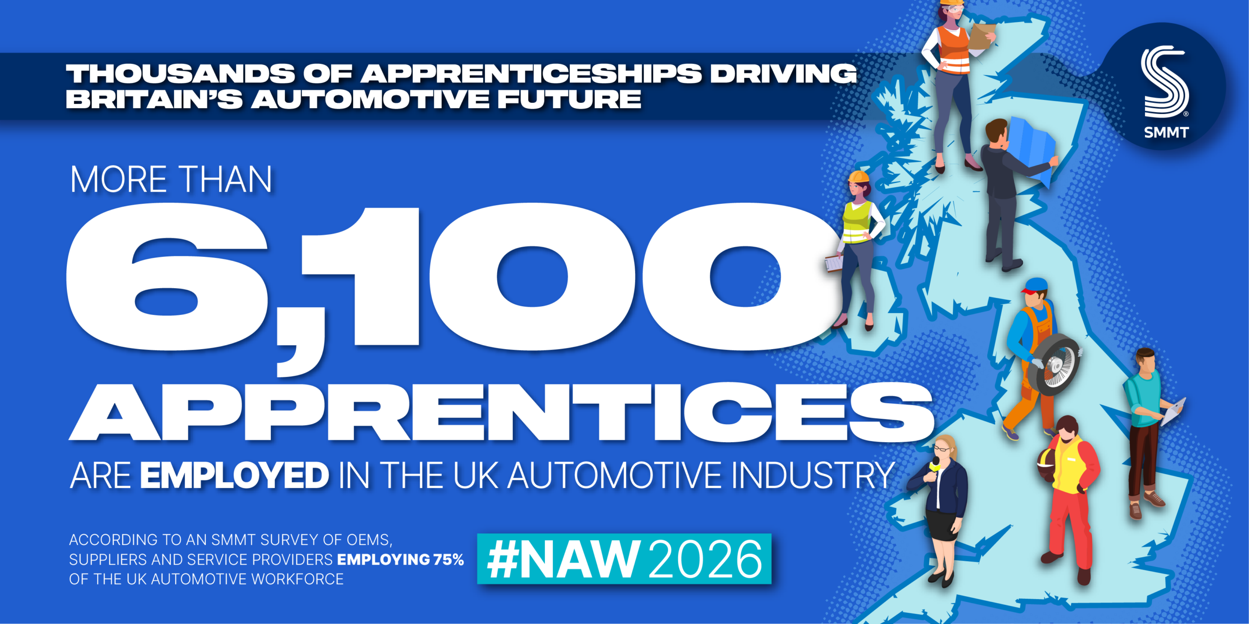 Britain’s automotive industry is in the midst of a major skills drive with the number of apprentices in the sector rising by 33% and new starters up 28% in 2025, according to a new survey of major employers by the Society of Motor Manufacturers and Traders (SMMT).1 There were 1,699 apprenticeship starts in the last academic year, while a further 1,824 apprenticeship courses were provided to upskill existing workers in their current role.